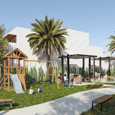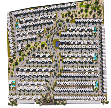 En Distrito Terra iniciamos la Etapa 1 con el Macrolote 1 y el Macrolote 2, Casas Club Cada en cada macrolote que incluye Alberca, Terraza club, Camastros, Pet Area, Zona BBQ y Ára infantil